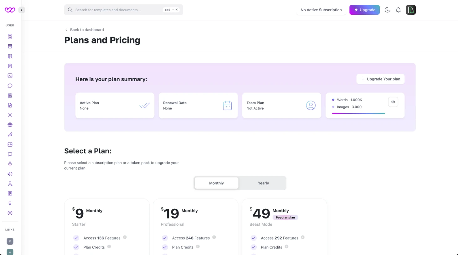 If your current subscription plan is not enough for your usage, you can always upgrade your subscription plan from your dashboard. Follow the following steps: