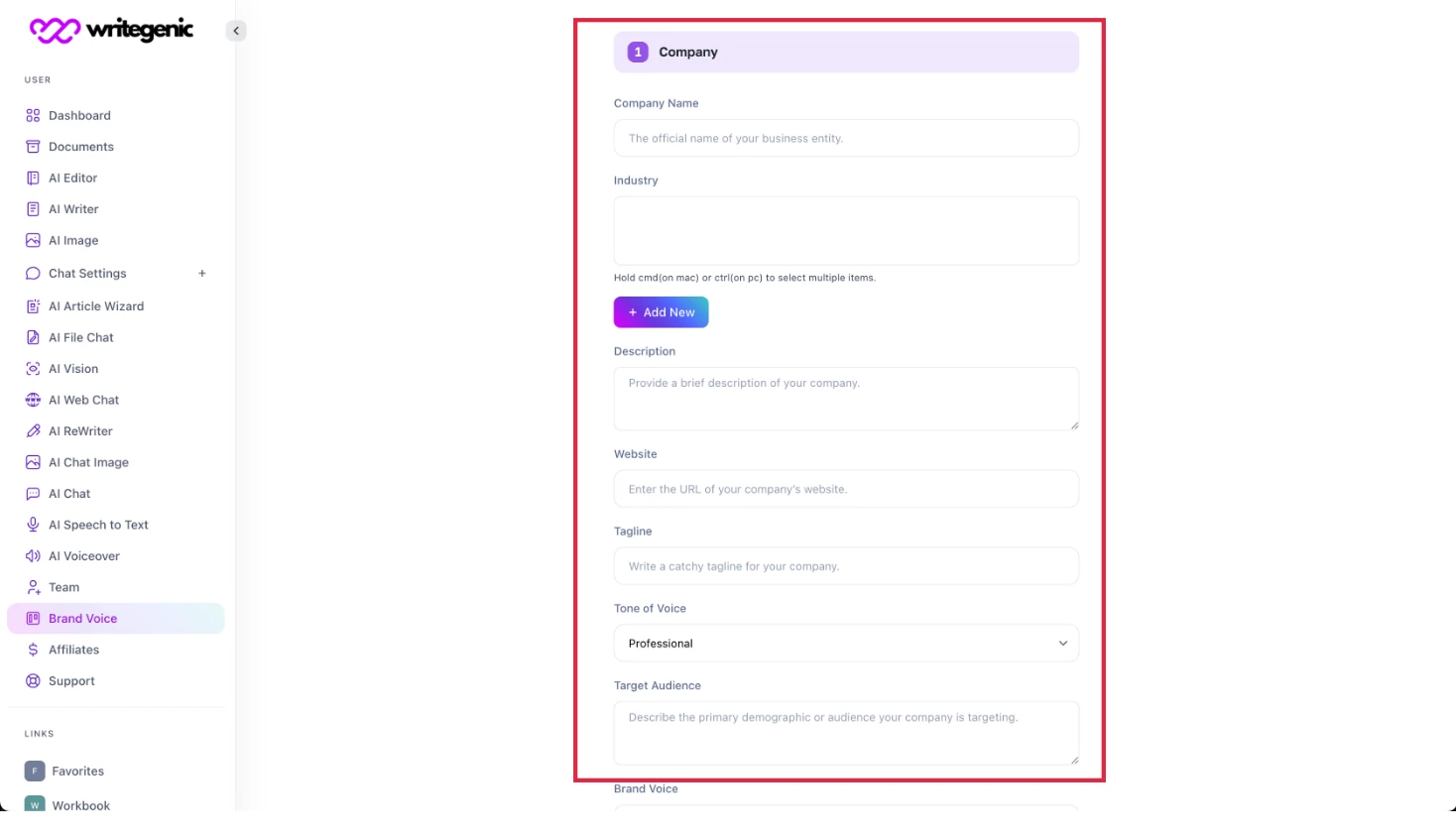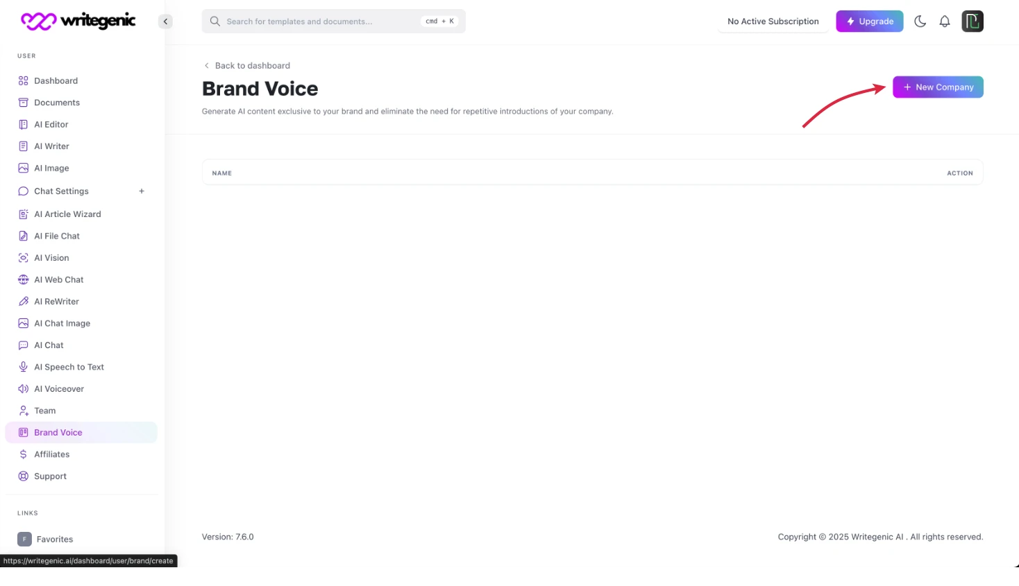 Following are the easy steps to setup your brand voice on Writegenic AI: