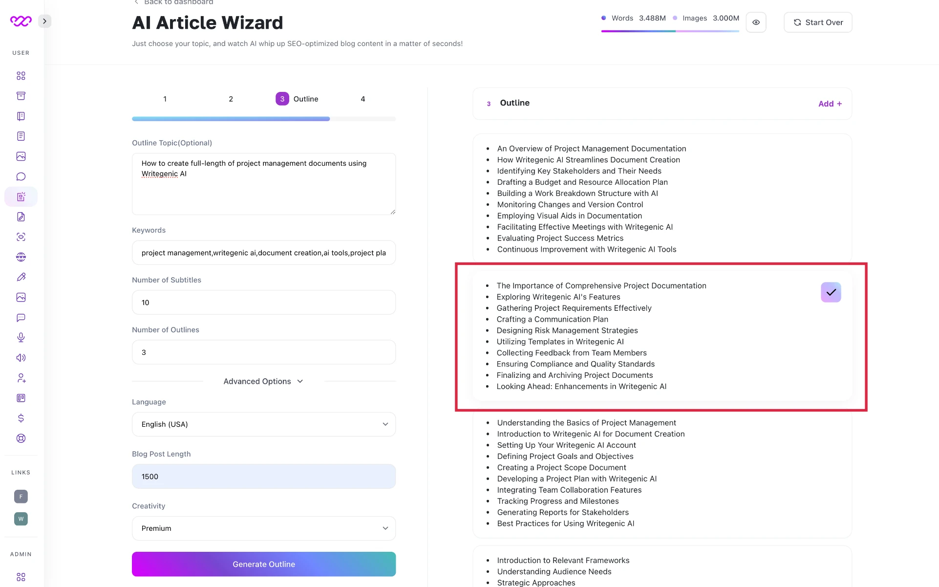It will generate multiple options of outlines. You can select the one you think suits your topic best.