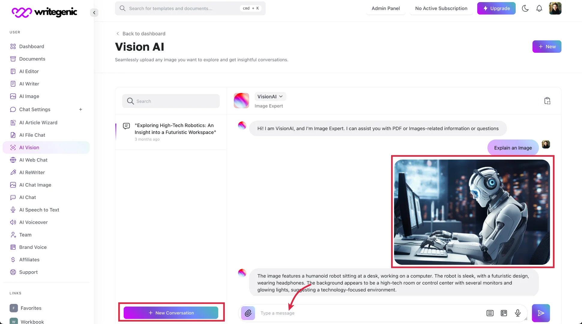 Similar to AI file chat, AI vision analyzes and answers according to the image you have uploaded.