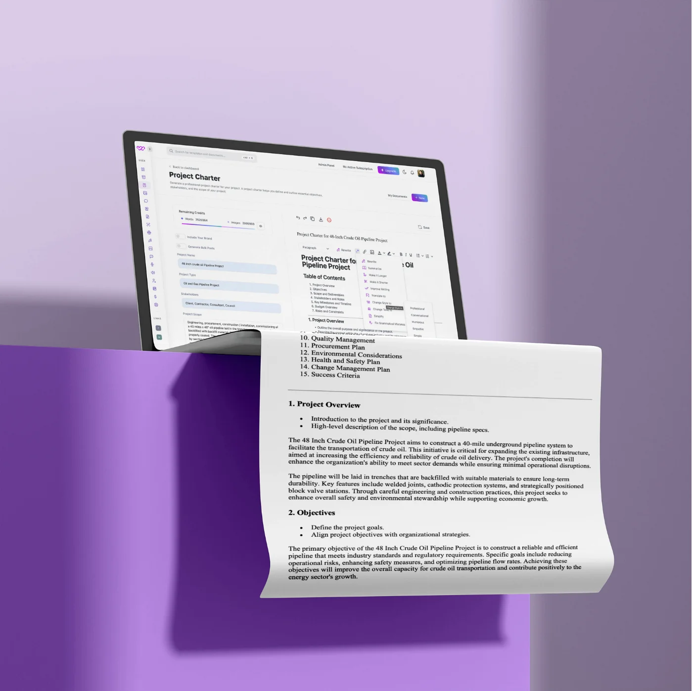 When you are executing a project, you might face some critical risks. Writegenic AI writes Risk management plans, mitigation strategies, contingency plans in order to save you from any unforeseen circumstances.